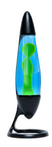 Particulièrement sûre : « Neo » est fabriquée en métal moulé, fonctionne à basse tension, sa base chauffe moins que celle des autres lampes à lave et sa bouteille est en verre incassable.
