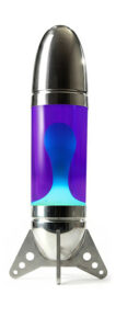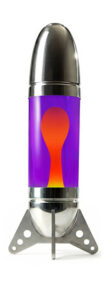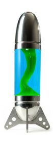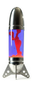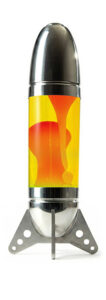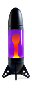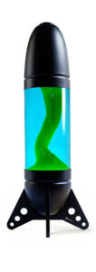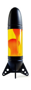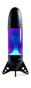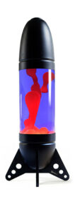 « Rokit » est une immense lampe à lave en forme de fusée, conçue pour être posée sur une table ou au sol, fabriquée en aluminium formé par rotation et découpé au laser.