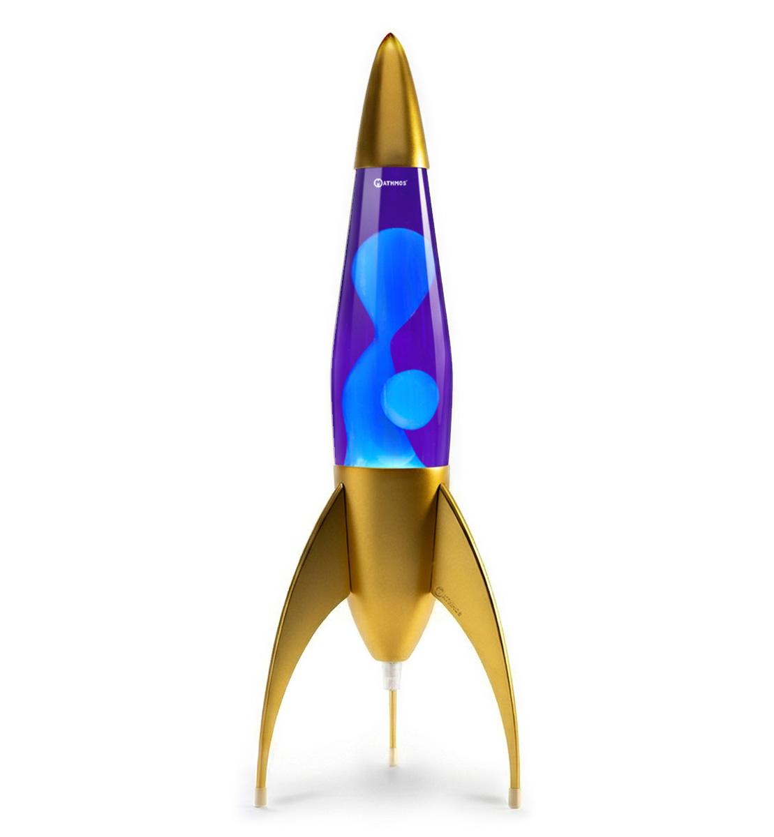 Matériaux : Alliage de zinc et d’aluminium moulé sous pression, base et capuchon avec finition or mat. Bouteille en verre remplie de la lave unique de Mathmos.
